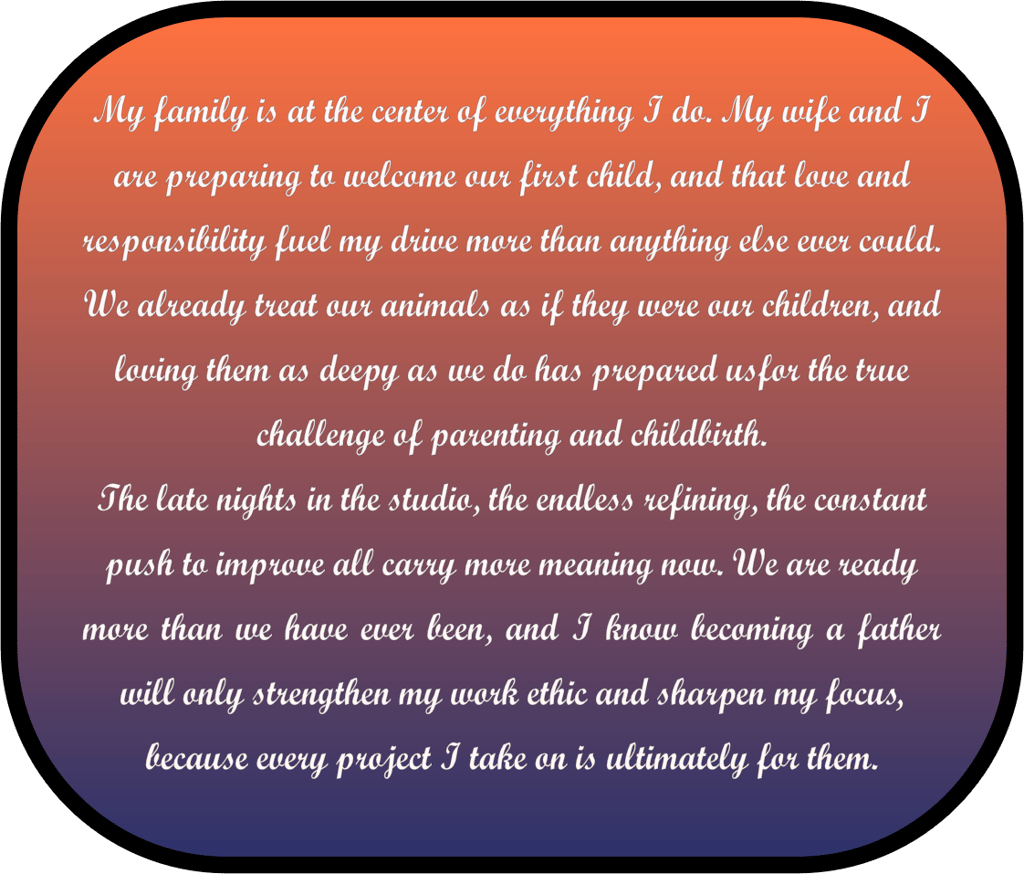 I have spent more than twelve years producing and engineering music, and it has given me experiences that few people ever get. Music has carried me across the world and helped me build a loyal fan base that I will always be grateful for. As incredible as those years of travel and performance have been, life looks different now.